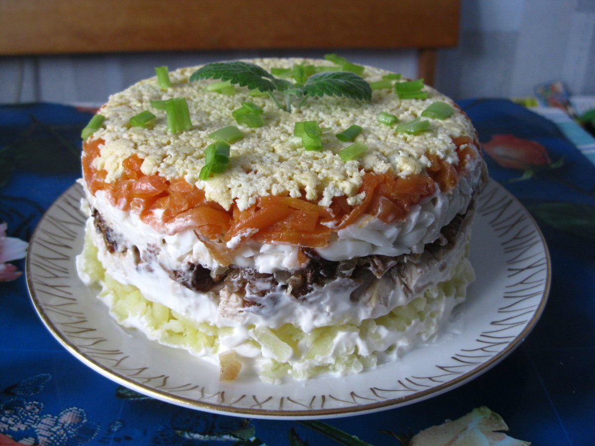 Овощной торт с яблоками и редькой. Зима, помимо того, что это холодное и снежное время года, является отличным сезоном для “майонезных” салатов. Майонез очень калорийный, особенно купленный в магазине, то есть производственный. Вкусным и не очень вредным этот соус можно приготовить своими руками в домашних условиях. В этом соусе содержится тот перечень продуктов, который есть практически в каждом российском доме: сметана или молоко, яйца куриные или перепелиные, горчица или уксус. Майонез добавляют в 70% всех салатов. Он может смешать и добавить изысканный вкус для несочетающихся продуктов! Что мы и попробуем сделать в этом салате. Салат состоит из овощей, сочетание может быть разным. Для изготовления этого салата-торта нам понадобятся: Яйца -4шт Картофель-3шт средние Редька зеленая-1шт Яблоки зеленые-2шт Морковь-3 шт средняя Луковица маленькая- 3шт Сыр твердых сортов-200-250г Майонез-250-300г Приготовление: Для начала необходимо отварить картофель, тщательно его промыв железной