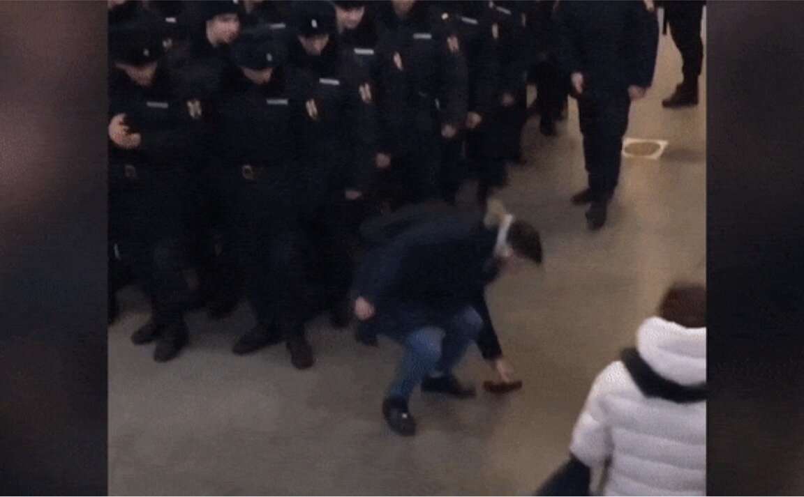 На кадрах видно, как пранкер идёт мимо строя парней в форме с надписью «Росгвардия» на столичной станции метро «Библиотека имени Ленина». Он роняет пистолета, а затем спокойно поднимает и уходит. Пока росгвардейцы со смущённой улыбкой следят за происходящим.