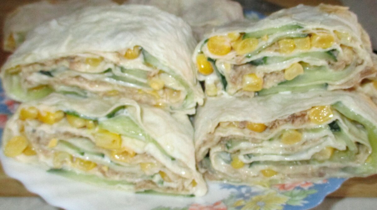 Сегодня решила сделать рулет из лаваша с консервированным тунцом.