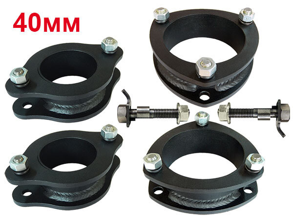 Проставки устанавливаются на штатные стойки и амортизаторы, без выбивания болтов из родных опор. В комплект входят: