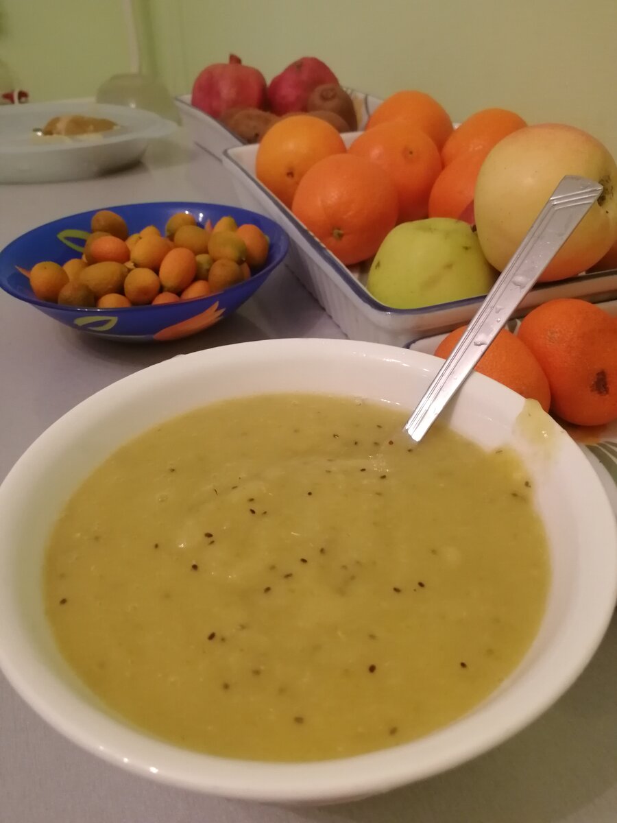 Ничего нет лучше из питания, чем свежие овощи и фрукты. Про некоторые тонкости в приготовлении овощей я рассказывал ранее. Теперь дошла очередь поделиться рецептом сытного завтрака или фруктового перекуса для себя или детей. Часто проблема состоит в том, что дети не хотят кушать те ли иные фрукты, а питаться при этом фруктами очень полезно. Про пюре из баночек в супермаркете я долго рассказывать не буду. Достаточно прочитать только часть состава на этикетке. Да и в свежем- то виде ребенок от силы может скушать пару кусочков. Какой из этого выход? Очень простой! Делаем СМУЗИ или так называемое фруктовое пюре. Ингредиенты могут быть различные, по вашему вкусу и предпочтению. Кто любит покислее, а кто послаще, да и по густоте - можно добавить воды или растительного молочка. При наличии необходимых бытовых кухонных приборов-помощников это займёт минимум времени. Поделюсь с вами одним из рецептов своей жены.