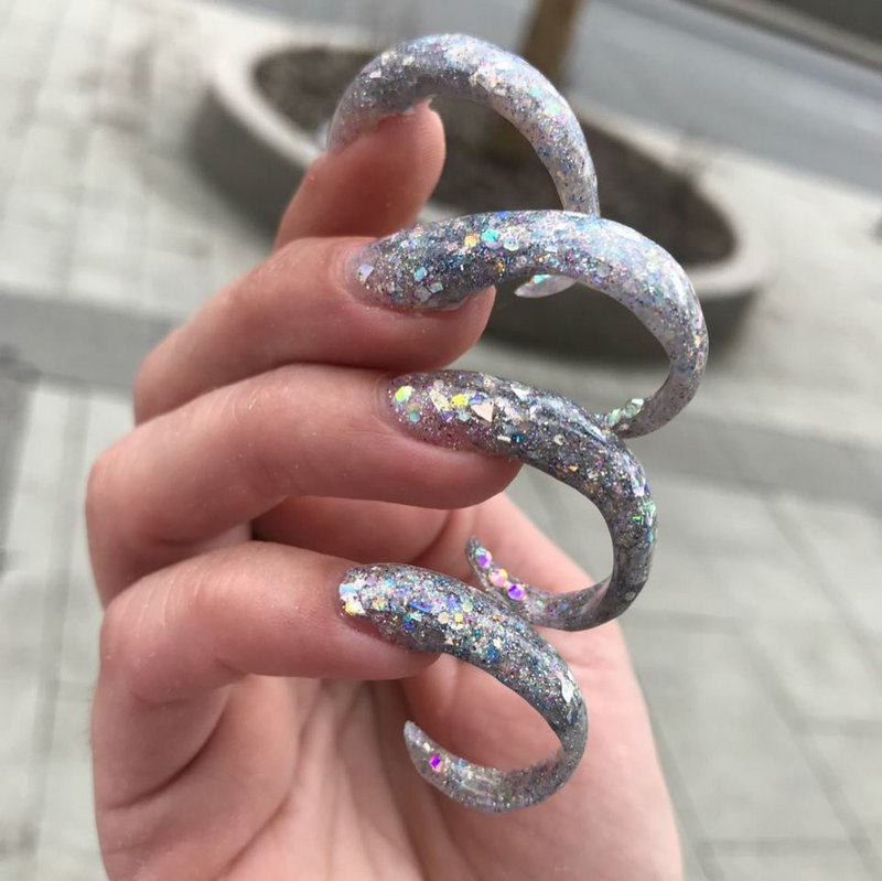 Какие только оригинальные идеи не выдают мастера по ноготочкам. В погоне за новыми клиентами и хайпом они придумывают все новые дизайны. Некоторые из них становятся трендом, но сегодня не о трендах, а о самых безумных и необычных формах маникюра, воплощенных в жизнь! С таким маникюром хоть на щуку, хоть на леща! На внутренней стороне тоже стразы. Не могу сказать, что это красиво (субъективное мнение), не говоря об удобстве. Ногти "Лопатки"