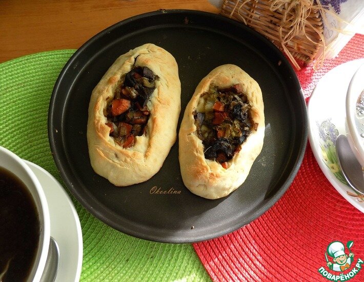 Тесто для лодочек бездрожжевое на воде с подсолнечным маслом холодного отжима. Начинка для лодочек из мороженых подосиновиков, пекинской капусты с луком и морковью. Блюдо для Поста в дни, когда едят масло. Ингредиенты для «Бездрожжевые лодочки с грибами и капустой»: Для теста Для начинки Время приготовления: 60 минут Количество порций: 2 Рецепт «Бездрожжевые лодочки с грибами и капустой»: Нам нужно отварить грибы в подсоленной воде. Это можно сделать заранее. Делаем тесто. Муку смешиваем с сахаром и солью в посуде. Делаем углубление и наливаем в муку тёплую воду и подсолнечное масло. Замешиваем тесто сначала ложкой, а затем руками, смазав их маслом. Тесто липкое. Скатываем в шар, перекладываем тесто в эмалированную посуду и даём ему постоять, пока делать будем начинку. На сковороду налила масло подсолнечное холодного отжима, разогрела его и выложила лук, порезанный мелко. Следом-кубиком мелким порезанную морковь. Убавила огонь и под крышкой потомила. Шумовкой выловила грибы отваренные