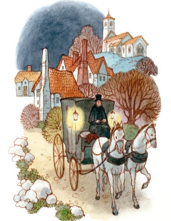 Потом они проехали мимо церкви и дома священника, проехали мимо освещенного окна лавки, где были выставлены для продажи игрушки, сласти и еще кое-какие товары, и наконец выехали на проезжую дорогу, где Мери видела только деревья и изгороди. После этого очень долгое время ничего другого не было видно.
