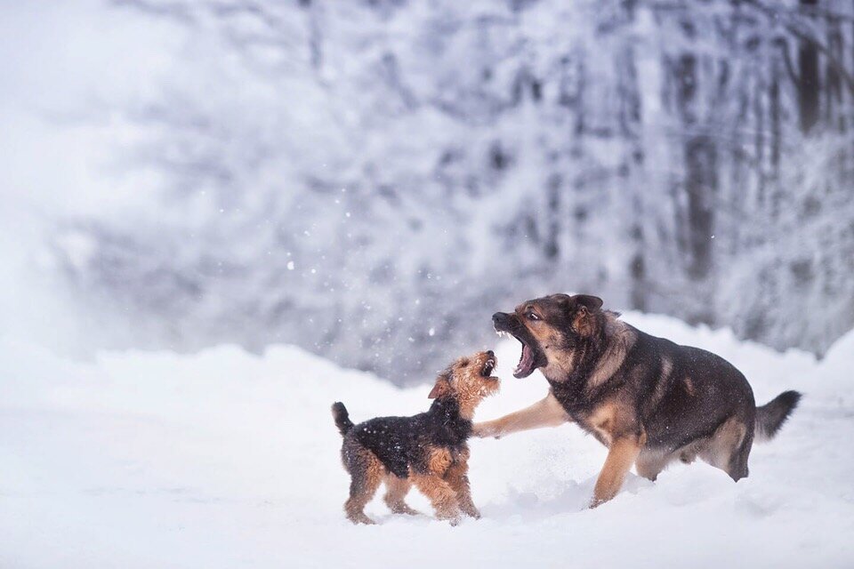 4. Не допускать прямого взгляда собак друг на друга.