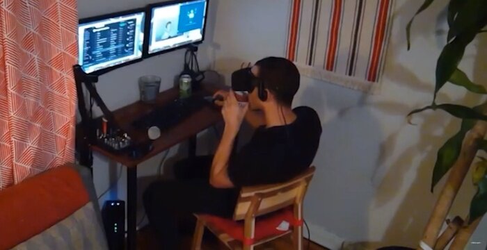 Автор YouTube-канала Disrupt решил проверить, что произойдет с человеком, который вообще не будет снимать VR-шлем на протяжении целой недели и при этом работать, принимать душ, спать, есть, и заниматься физическими упражнениями. Подопытный закрыл все свои окна черным полотном, чтобы не видеть, день на дворе, или ночь. Он также использовал не один VR-шлем, а целых два — второй позволял частично видеть реальный мир в ситуациях, когда без этого нельзя обойтись. По условиям эксперимента вне шлема можно находиться не более пяти секунд. Автор решился на эту идею из-за смелого убеждения о том, что скоро виртуальная и дополненная реальности сольются воедино, а VR-техника станет гораздо удобнее и доступнее. Благодаря этому любой человек сможет вообще не покидать виртуальную реальность. Цель эксперимента — проверить этот подход в деле. В среду — день начала эксперимента — за первые шесть часов он опрокинул на себя чашку кофе, сидя за компьютером, а ночью испытывал некоторые проблемы с засыпание