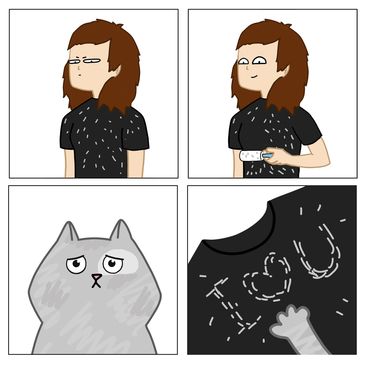 Представьте, вдруг котики оставляют нам любовные послания на одежде? 🤔 А мы бессердечно их убираем роликом из икеи 😭🙈💜 Предлагаю носить шерсть на одежде как признак гордости 😂 А заодно окружающие смогут побыть Холмсами, гордо заявив, что они вычислили, что у нас есть коты 😂😂