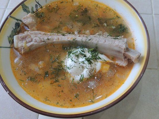 По количеству рецептов щей, борщей и супов сразу можно определить, как в моей семье любят первые блюда. Хотя не правильно говорить первое, ведь когда приходишь в ресторан в качестве первого, всегда приносят салат, чтобы разгулялся аппетит. Но мы народ простой из деревни, в ресторанах бываем редко. Поэтому представляю вам наивкуснейшее первое блюдо. Наваристый рассольник с перловкой и соленым огурцом со свиными ребрышками. Рассольник самое обожаемое блюдо моего сыночка, он настолько любит перловку, что вам и не передать. Одно успокаивает, в армии ему будет легко. Там перловка будет часто. Для приготовления понадобится: Свиные ребрышки промываем, заливаем холодной водой. Ставим кастрюлю на нагрев. Как только образуется пенка, ее снимаем. Перловую крупу промываем, засыпаем в кипящий бульон и варим вместе с ребрышками приблизительно час. Я люблю, когда бульон крепкий, наваристый. Поэтому стараюсь подольше поварить мясо на косточке. Картофель очищаем, нарезаем на произвольные кубики, отпр
