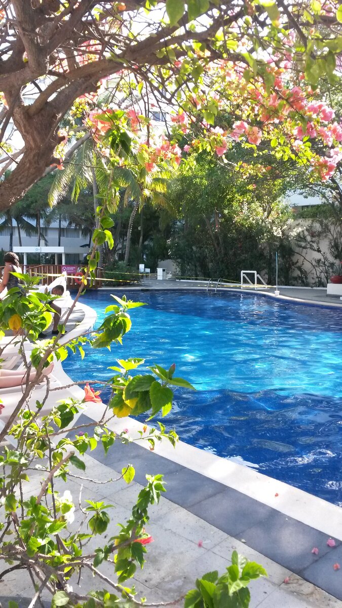 Территория у этого отеля небольшая. Собственно - жилые корпуса плюс рестораны идут стеной. Дальше - линия бассейнов, и после зеленой полосы - пляж. Немного не хватало зоны для променада. Бассейнов здесь четыре штуки. Два - на территории 4-ки - детский и взрослый. Один - у пятизвездочного корпуса. Пользоваться можно всеми бассейнами. Пляж. Пляж здесь идеален для семей с детьми - море без волн. Чистое. Но неглубоко. Для нас это был абсолютный плюс. А кому-то это не понравится. Но! Совсем недалеко пристань кораблей. Возможно, кого-то это оттолкнет. Рифов в ближайших окрестностях нет. Но возле буйков - водоросли. Там можно увидеть рыбок; мы видели морскую звезду и огромную ракушку-моллюска. Лежаков на пляже всегда хватает. Есть пляжный клуб для жителей 5-звездочного корпуса с платными балийскими кроватями. По территории бродят павлины. Есть Спа - зона Есть пирсы, на которых можно сделать массаж, или организовать романтический ужин вечером. С пирса, который совсем рядом, каждый вечер о