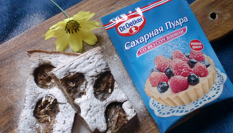 Не дорогой, вкусный десерт быстрого приготовления. К теплому пирогу можно добавить шарики сливочного мороженого. Не содержит в рецепте куриных яиц. Ингредиенты 12 ст. л.-Сахарная пудра со вкусом ванили Dr. Oetker 1 упаковка - Разрыхлитель теста Dr. Oetker 22 шт. - Бананы 2 стакан - Мука пшеничная 0.5стакан - Сахарный песок 0.5 ч. л. - Соль 100 мл - Кефир 2 ч. л. - Корица 1 шт. - Цедра и сок одного лимона 1упаковка - Разрыхлитель 12 ст. л. - Сахарная пудра со вкусом ванили Способ приготовления Шаг 1 Блендируем 2 банана, добавляем муку, соль, сах. песок и разрыхлитель теста Шаг 2 "Маринуем" 2 банана в соке лимона и цедре Шаг 3 Заливаем тесто в форму и посыпаем корицей Шаг 4 Выкладываем на тесто "маринованные" бананы и помещаем в духовку на 40 мин. Шаг 5 Вкусный пирог готов, осталось только украсить его сахарной пудрой. Шаг 6 Приятного аппетита!