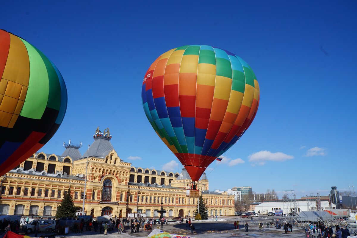 14 марта,на нижегородской ярмарке взмыли ввысь воздушные шары. В воздушной фиесте участвовало четыре аэростата, но в воздух поднялись только три из них . Пилотам очень мешали сильные порывы ветра, о которых не предупреждали прогнозы. В итоге они сделали полёт еще более экстремальным. Перед запуском аэростатов у здания Нижегородской ярмарки прошла предполетная подготовка. Руководитель Федерации воздухоплавательного спорта собрал пилотов и пассажиров на брифинг, где рассказал о правилах безопасности и пожелал всем удачного полета. Кстати, перед запуском воздушного шара по традиции в небо запускают маленький шарик — так проверяется направление ветра. Воздушные судна взлетели от Нижегородской ярмарки и прошли над Стрелкой и катером «Герой». И самое главное, в этот раз можно было не просто смотреть на воздушные шары, а летать в них. Такая услуга стоила всего 1000р для взрослых и 500р для детей. Те, кто исполнил свою мечту, смог насладиться Нижегородскими ландшафтами и получить незабы