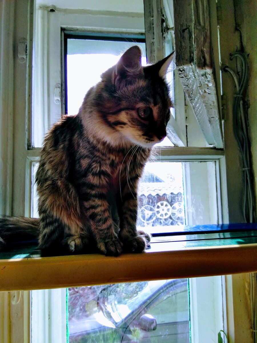 Гляжу на Марусю и думаю: ну зачем я тебя взяла домой?! Глупая женщина! А эта звезда посмотрит на меня своим томным взглядом, пройдёт покачивая распушенным хвостом (а хвост у Маруси знатный!), и я млею от счастья. А тут ещё история с бездомным Степаном. Ну как же я не поинтересуюсь? Поехала сама посмотреть на пёсика, чтобы сватать потеряшку. И пока я смотрела на собачьего мальчишку, моя красота решила отомстить мне за отсутствие. Ведь я на протяжении всей её жизни у нас в доме практически не отлучалась надолго. А тут весна... Коты за окном ходят... Неужели и у хозяйки весенний гон начался? Куда-то из дома шастает, а девочку оставляет среди мальчишек, от которых только одни неудобства. Ну что делать с котом-кастратом? Возрастной дяденька, да ещё и привередливый какой-то. Сразу видно - баловень хозяйский. Спит целыми днями и ест. Да ещё и выбирает что повкуснее. Ну ничего, я тебе устрою догоняшки. Хоть порастрясёшь свою тушку. Да и неуклюжий, глядишь хозяева тебя летящего по квартире ско