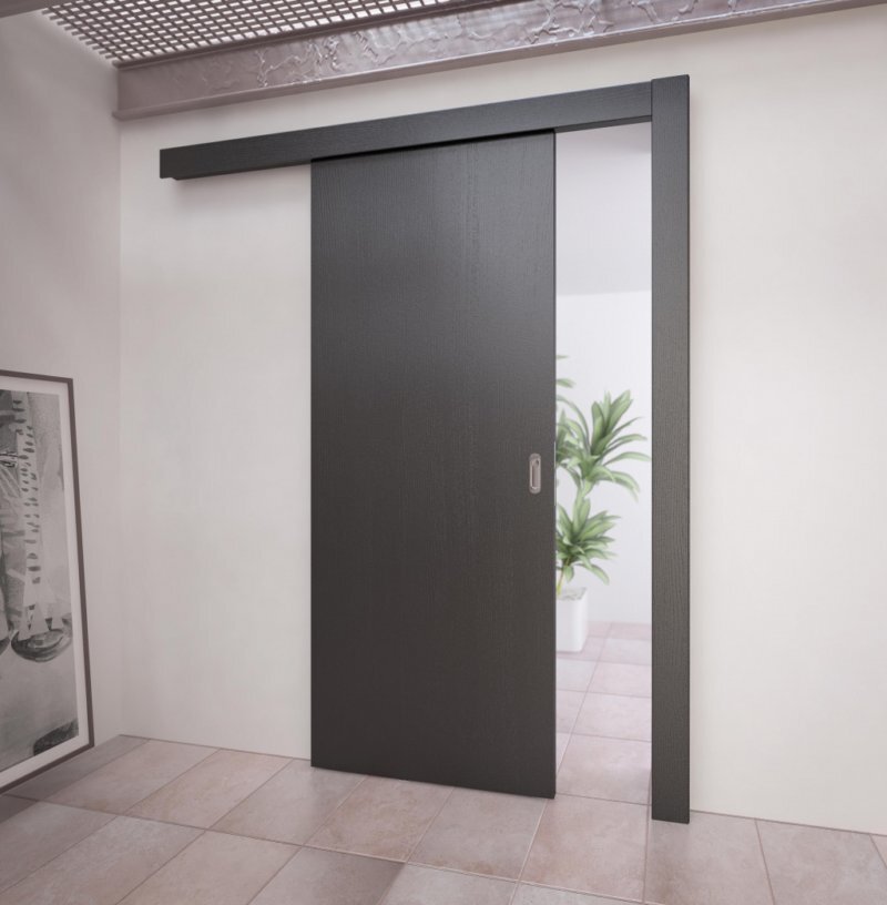 Звуковая изоляция.Поставив данную дверь за стену типа фальш, звуковая изоляция у нее будет гораздо лучше, чем у обычной сдвижной двери, установленной на ролики вдоль стены. Если сравнивать сдвижную дверь, которая спрятана за стену типа фальш, со стандартной межкомнатной дверью классического типа, то звуковая изоляция у классической будет значительно хуже. Правильное пользование полезной площади. Если дверной проем расположен по центру помещения, то дверь сдвижного типа будет более удобней, с точки зрения открытия. Данное изделие не мешается, а также не сталкивается со стоящей мебелью рядом. Также на сегодня существует большое количество ограничителей открывания, защищающие вашу мебель и дверь. Двери сдвижного типа выше по цене обычных, так как отличная рельса с отличными роликами оценивается приблизительно в столько же, сколько качественное полотно. Дверь сдвижного типа значительно делает уже сам проем. В полости между основной стеной и стеной типа фальш, куда уже уходит сама дверь, с