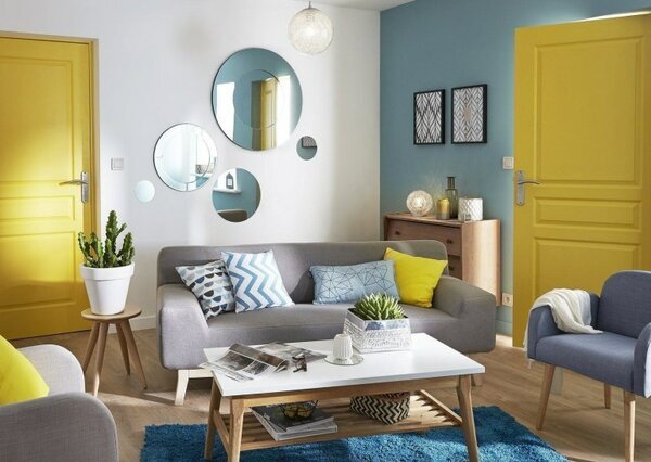 Если у вас в интерьере собраны мебель и предметы, которыми вы гордитесь - можно сделать на них акцент с помощью обычной цветной ленты. Это также довольно смелое решение, но все же, не такое, как старая штукатурка, к тому же со временем его легко убрать и заменить чем-то другим.