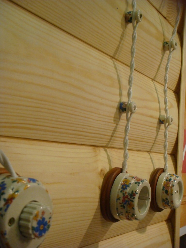 Шаг 1. Подведите провода к точке, где предполагается установка выключателя. Их можно прикрепить к стене хомутами, а затем спрятать в кабель-канале. Если у вас керамические выключатели, то можно приобрести фаянсовые ролики, куда крепится переплетённый провод.
