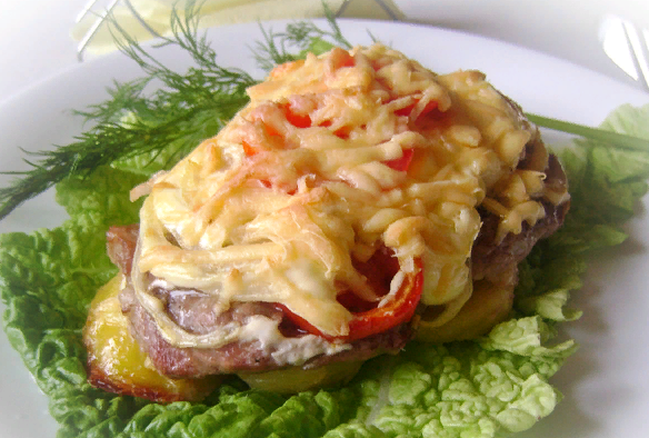 Один из вариантов приготовления очень популярного блюда. В этом рецепте мы вам покажем как приготовить Мясо по французски с шампиньонами и помидорами. Ингредиенты Как приготовить мясо по французски с шампиньонами и помидорами Для начала нужно помыть и порезать грибы. Обжарить их на сковородке. Добавить к ним лук. Его надо нарезать полукольцами. Далее натрите сыр на крупной терке. Порежьте мясо ломтиками и отбейте его с двух сторон. На противень расстелите бумагу для запекания и выложите мясо, затем смажьте его горчицей, посолите и поперчите. Далее укладываем на отбивные сначала грибы с луком, затем помидоры, нарезанные полукольцами. Потом посыпаем мясо тертым сыром и отправляем в разогретую до 200 градусов духовку на 35 минут. Мясо по французски с шампиньонами и помидорами готово! Рецепт подготовлен авторами сайта: www.dva-povara.ru