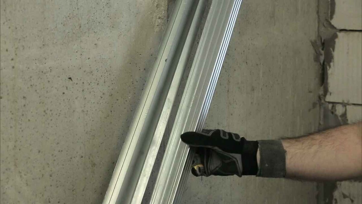 Для монтажа короба из гипсокартона понадобится 3 профиля: два 27х28мм и один 60х27мм. Замерить высоту помещения. При высоте помещения 2640 мм отмерить профиль 2630 мм, сделать надрез ножницами по металлу. Те же манипуляции произвести с другими профилями. Чтобы сэкономить пространство в помещении, с помощью лазера и рулетки произвести замеры и найти максимальный выступ трубы. Перенести отметку максимального выступа трубы на стену. Выставить лазер по отметке, закрепить профиль к бетонной стене саморезами. Аналогичным способом, используя лазер, прикрепить профиль к пеноблочной стене. На листе гипсокартона сделать отметки по 120мм, отрезать нужный кусок. В случае, если не хватает длины гипсокартона, следует отрезать ещё небольшой кусок. Прикрутить гипсокартон к профилю с помощью шуруповерта. Удобнее будет использовать профессиональную насадку для саморезов. На куске гипсокартона отметить и, с помощью ножа, вырезать отверстия для труб. Установить и закрепить саморезами лист гипсокартона с