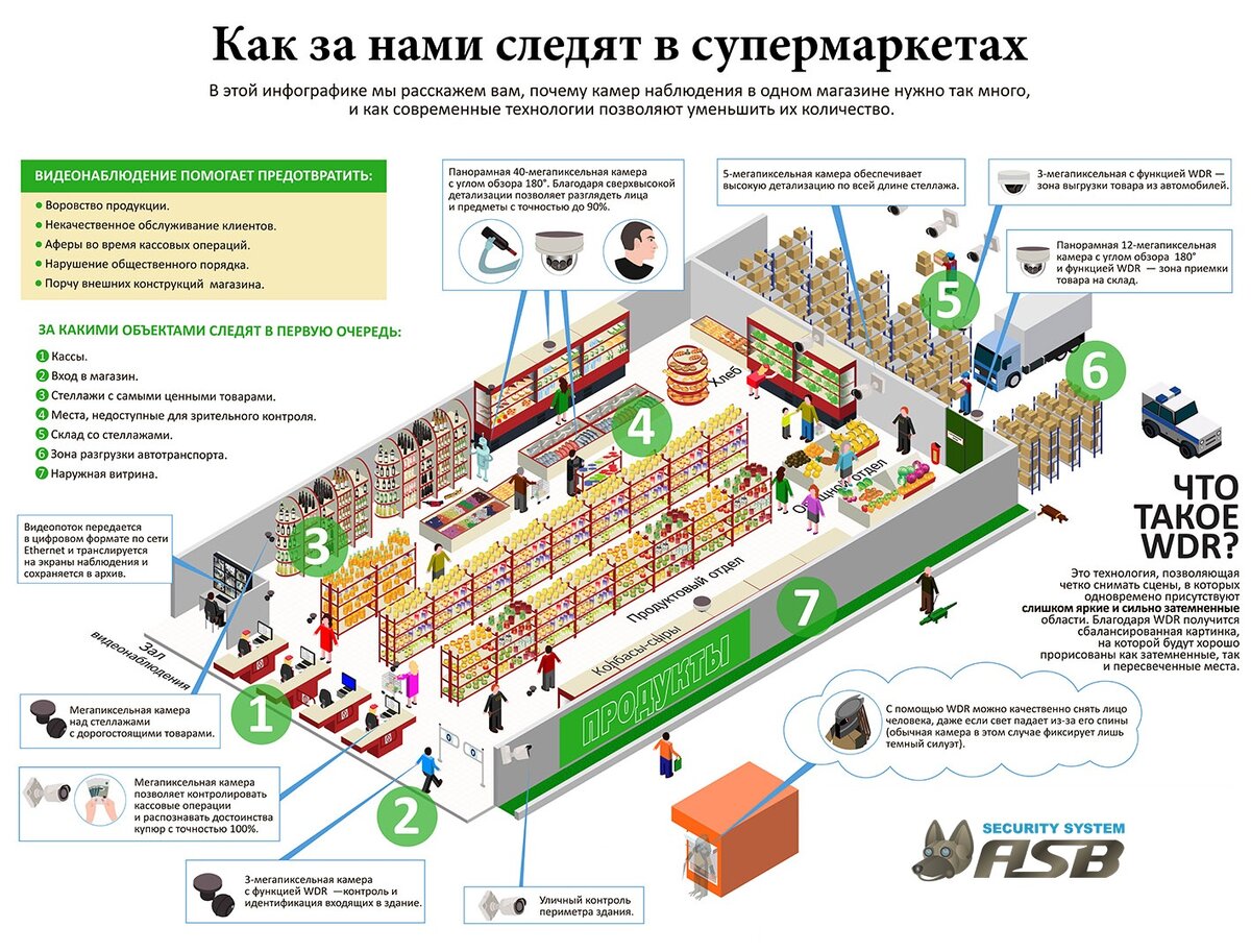 Установка системы видеонаблюдения в магазине – разовое вложение, которое навсегда избавляет владельца от убытков, причинённых товарными потерями. Установка системы видеонаблюдения в магазине – разовое вложение, которое навсегда избавляет владельца от убытков, причинённых товарными потерями. Сегодня это наиболее действенный метод предотвращения воровства. Наличие камер существенно дисциплинирует персонал, содействует разрешению спорных ситуаций, позволяет снизить издержки на штатную охрану. Тип и конфигурация системы наблюдения подбираются с учётом специфики помещений торгового объекта. Как правило, видеокамеры монтируются в торговом зале, у касс, в зоне входа/выхода, на складе. Установка наружных камер позволяет охватить наблюдением парковку. Разрешение (детализация) изображения может различаться. Комплекты видеонаблюдения для магазина Комплекты видеонаблюдения для магазина – это специальный набор видеозаписывающих и фиксирующих устройств, который позволяет осуществлять наблюдение з