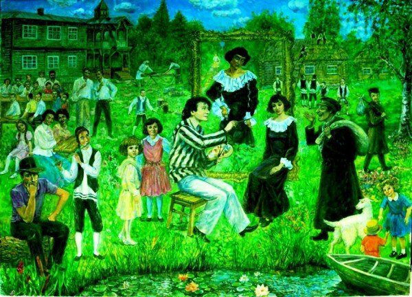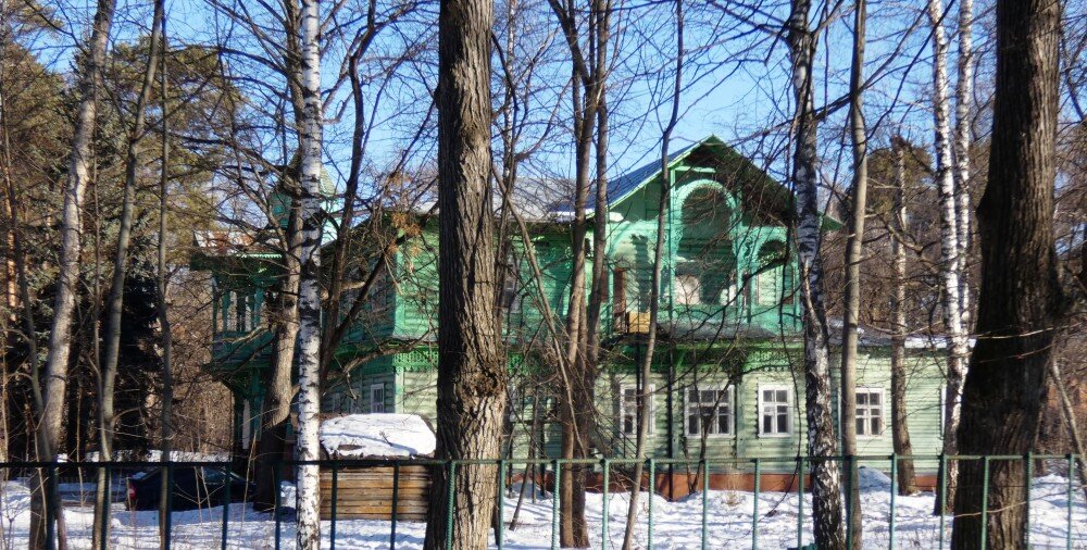 Неподалёку от нас, в Люберецком районе, сохранилось необычное здание начала 20 века - деревянное, резное, с галереями и башенкой. Он был построен как дача еврейской колонии (тогда посёлок Малаховка считался «неофициальной столицей Еврейского автономного района Московской области», а сейчас, судя по всему, это Кратово, - но это уже другая история). Позже здание стало детским домом, а затем школой, где жил и преподавал Марк Шагал! Это картина современного художника Виктора Бриндача "Шагал в Малаховке", слева - как раз то сооружение, о котором идёт речь.