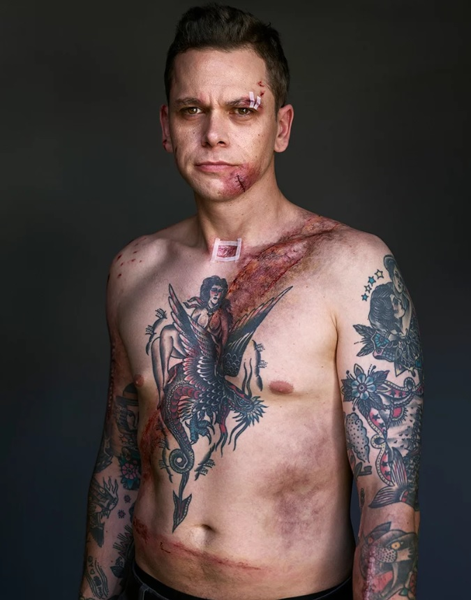 Арт-проект с обнаженными мужчинами, чьи тела покрыты шрамами