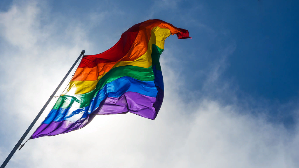 Радужный флаг (также известный как Прайд-флаг (англ. Pride flag)[1][2], Флаг свободы (англ. Freedom flag)[3]) — интернациональный символ сообщества лесбиянок, геев, бисексуалов и трансгендерных людей (сокр. ЛГБТ-сообщество), а также движения в поддержку прав человека в их отношении[4]. Традиционно флаг состоит из шести продольных полос, цвета которых (за исключением голубого цвета) идут в соответствии с природным порядком радуги сверху вниз: красный, оранжевый, жёлтый, зелёный, синий и фиолетовый[5]. Флаг используется в шествиях гей-прайдов и других общественных акциях, вывешивается в гей-кварталах, на зданиях ЛГБТ-организаций, «Gay-friendly» заведений и так далее. Флаг призван отображать единство в разнообразии, красоту и радость ЛГБТ-сообщества[6].