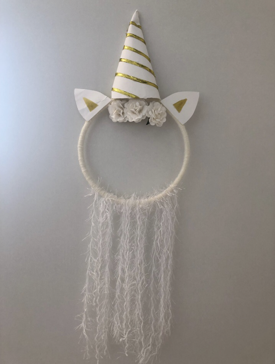 Ловец Снов своими руками! Быстро, Просто и Забавно! "Единорог мечтатель" Это необычный ловец снов своими руками. Нам понадобится: ▲ Внутренняя часть пялец. ▲ Нитки. ▲ Картон. ▲ Ленточки. ▲ Клей. ▲ Ножницы. ▲ Штучки для декорирования. Шаг 1: Обычной пряжей обматываем внутреннюю часть пялец. Шаг 2: Из картона или плотной бумаги делаем конус (рог). Декорируем его, золотой ленточкой. Шаг 3: Вырезаем треугольники (ушки) и внутрь приклеиваем треугольник поменьше другого цвета. Я вырезала из золотой тесьмы. Шаг 4: Приклеиваем детали к уже заготовленному кругу. Шаг 5: В качестве декора, я использую искусственные цветочки. Шаг 6: Лохматую пряжу нарезаю по 30-35 см и привязываю к кольцу. Замечательный ловец снов готов. Делался очень быстро и просто. Получается очень впечатляющий результат. 🤩