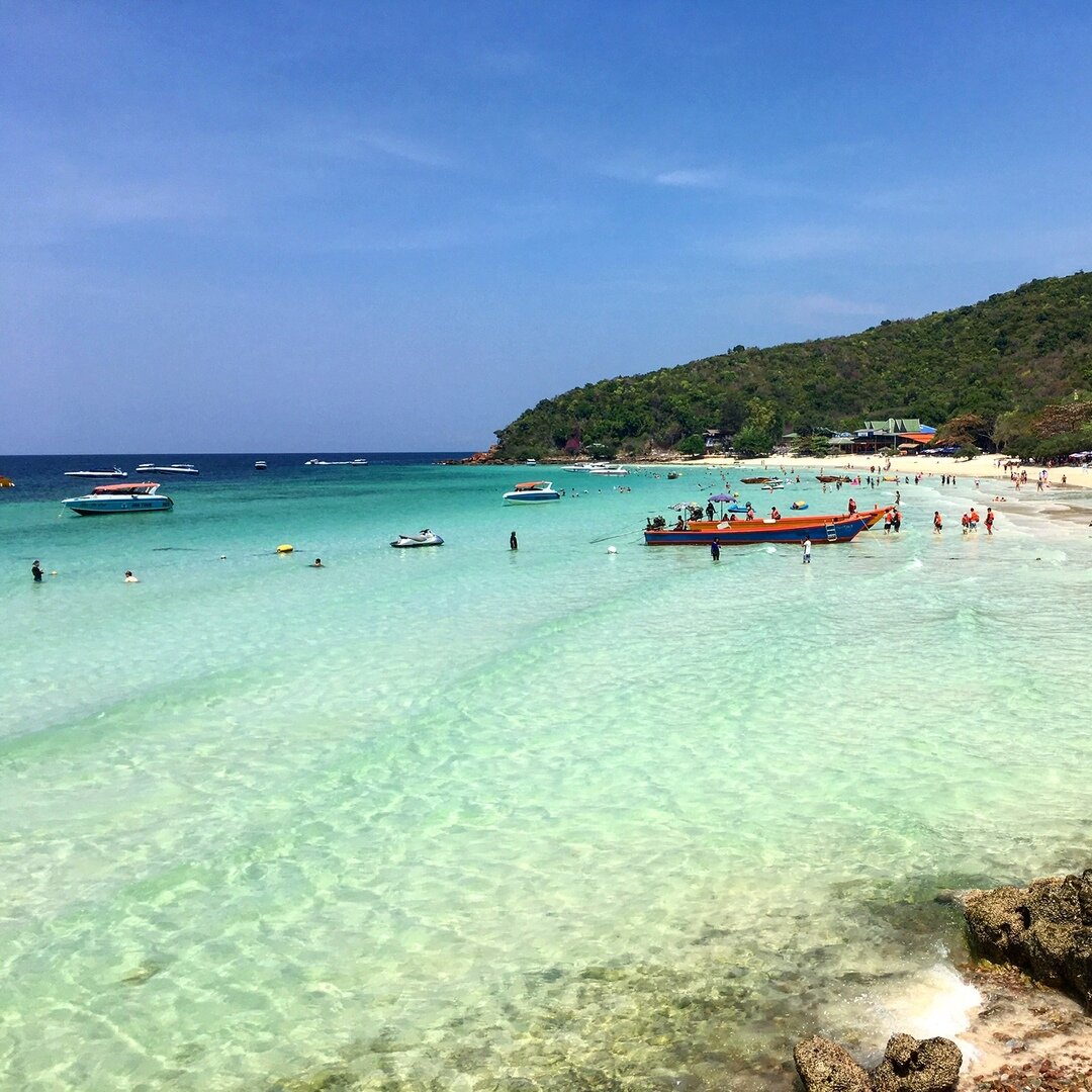 Недалеко от Паттайя есть остров Larn ( Koh Larn). Добраться до него можно с пирса Bali Hai на обычном пароме за 30 батт в одну сторону, это примерно 1 доллар. На самом острове много пляжей, но нам нравится Samae Beach и Tien Beach. Народу там поменьше, вода почище, мелководье и хорошие виды.