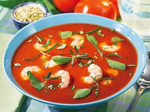 Как приготовить томатный суп с северными креветками. С помидоров снять кожицу, ошпарив их кипятком.