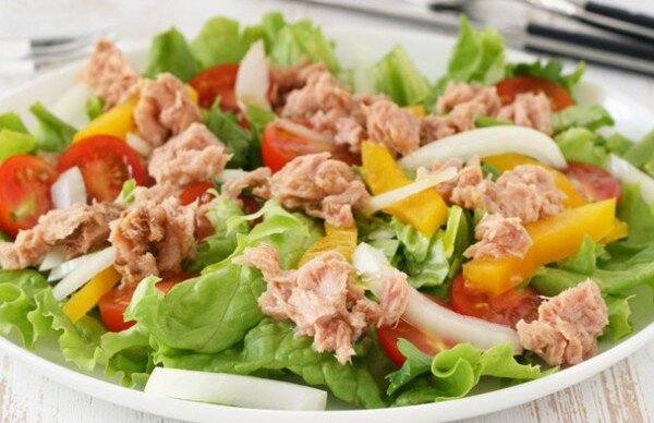 Одним из самых востребуемых блюд при правильном питании являются салаты. Салаты можно приготовить как основное блюдо, например на ужин, так и в качестве закуски. Предлагаю Вашему вниманию лёгкий и быстрый рецепт салата с тунцом. Тунец обязательно берите в собственном соку, а не в масле - это очень ВАЖНО! Жестяная баночка тунца несёт пользу организму ТОЛЬКО если он приготовлен в собственном соку. В нём содержится много белка и других полезных элементов. Такой салат идеален для худеющих, или для тех кто сидит на диете "сушка". Подробнее с этой диетой можно ознакомиться тут: Сушка тела - диета. Продукты питания на сушке. Салат по данному рецепту не только очень легко и быстро приготовить, также он максимально доставит Вам удовольствие своим сочетанием вкуса. "Сытный ПП салат с тунцом" Ингредиенты: