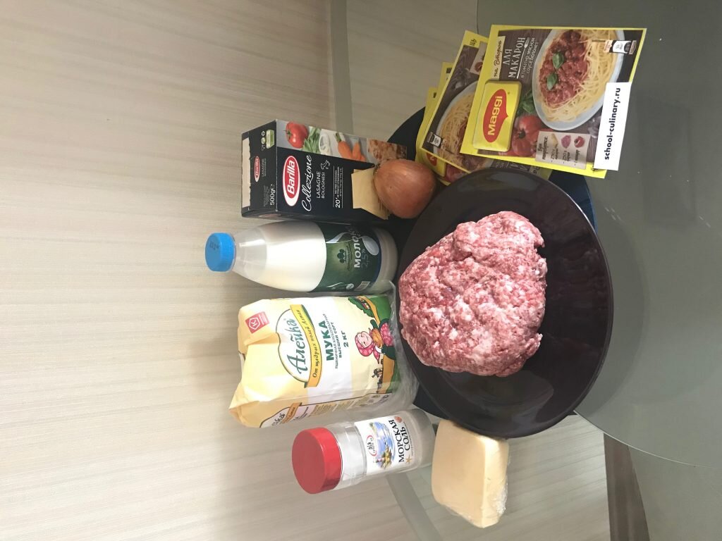 Лазанья - это традиционное итальянское блюдо. Представляет собой многослойную запеканку из теста и начинки Ингредиенты: Готовим соус болоньез. Измельчаем лук Обжариваем лук Добавляем к луку фарш, хорошо перемешиваем и жарим до готовности фарша Смешиваем содержимое пакетиков магги с горячей водой Заливаем соус в фарш, хорошо перемешиваем и тушим на умеренном огне 30-40 минут. Соус болоньез готов Готовим соус бешамель. Растапливаем сливочное масло Засыпаем в масло муку, обжариваем 3-5 минут. Вливаем к муке молоко, хорошо перемешиваем и варим до закипания, постоянно помешивая. Как только начнет закипать - снимаем с огня, добавляем соль, мускатный орех по вкусу, перемешиваем и накрываем крышкой. Соус бешамель готов. Выкладываем в противень соуса и листы слоями, начиная с соуса болоньез Дальше накрываем соус листами Заливаем все соусом болоньез, затем соусом бешамель. И так далее. Отправляем противень в разогретую до 200 градусов духовку на 20 минут. Натираем сыр на мелкой тёрке Спустя 20