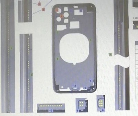 На сайте СлэшЛикс опубликовали самый первый чертеж, непосредственно связанный с iPhone 11. Нас ждет уродец? Мы видим силуэт смартфона со скругленными углами, а также отверстие в задней панели, которая предназначена для модуля беспроводной зарядке.