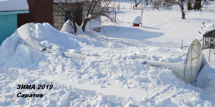 Рухнули, обрушились или сломались две теплицы под тяжестью снега, как правильнее будет сказать про такую проблему? В общем как не говори, а проблема для каждого дачника серьезная, можно сказать огромная проблема. Зима 2018/2019 в Саратовской области выдалась довольно снежной, владельцы теплиц на дачных участках чисто технически не могли добраться до них чтобы почистить (сбросить снег с теплицы), так дороги не было, были одни сугробы. Дачники уже давно не обращали большого внимания на проблему поломки теплиц в зимнее время от большого количества снега, просто снега было много зим довольно мало, больше переживали за замерзающий землей без снега. А тут природа решили напомнить о своем величии, вот и результат, в пригороде Саратова у нас имеет дачный участок, на участке установлены две теплицы, одна теплица 3 x 6 производитель «ВОЛЯ» модель «Дачная 2 дум» отзыв, толщина поликарбоната 4 мм. Сломалась теплица ВОЛЯ и полностью скрылась под снежным покровом дачного участка. Вторая теплица при