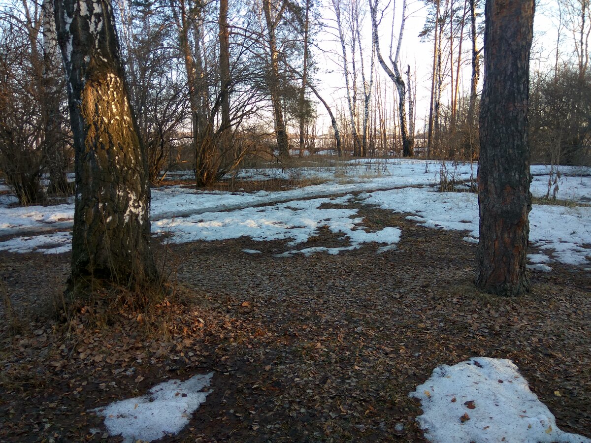 Сегодня, 7 апреля 2019 года, заехал в лес немного подолбить мороженую землю. Снега ещё хватает.