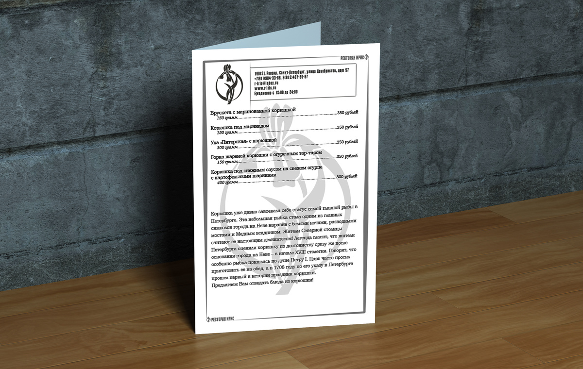 - Брускетта с маринованной корюшкой, 150 грамм, 350 рублей.