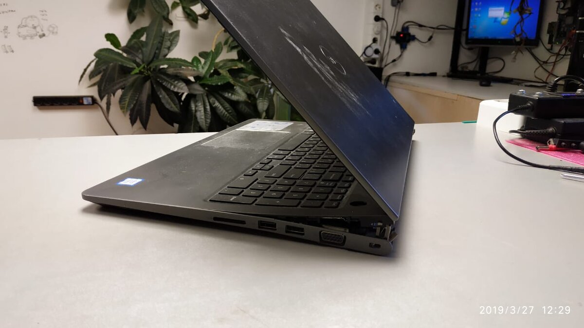 Что делали с этим ноутбуком не совсем понятно, но то что его разломали в хлам - это точно. Крышка матрицы практически отвалилась от корпуса ноутбука, нижний поддон деформирован, идущие в крышку матрицы кабеля оборваны. Дрались им что ли? Перед нами поставили задачу - чтобы был как новый, будем делать. Разбираем полностью ноутбук и крышку матрицы, восстанавливаем крепежи и монтажные стойки, заменяем оборванные кабеля и шлейфы. Спустя сутки все готово к сборке, приступаем. Собрали, потестировали, все работает, ничего не отваливается. Выглядит, конечно, не как новый, но все же гораздо лучше чем было. Ремонт ноутбука Dell Vostro 15 5000 выполнен.
