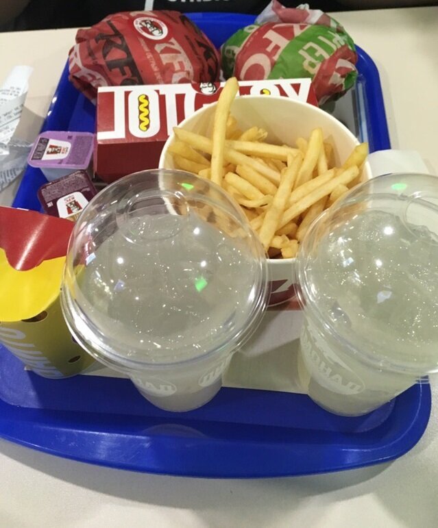 Одно время различные кафе, предлагающие перекусить фаст-фудом, были для меня теми заведениями, которые я посещала крайне редко - максимум раз в месяц. Но в последнее время, когда я стала часто заходить в различные торговые центры, походы в кафе быстрого питания увеличились в несколько раз. В основном посещаю я их в те дни, когда понимаю, что пообедать и поужинать дома просто-напросто не успею. Бывают такие дни, когда график сводится к раннему уходу из дома и позднему возвращению. В торговых центрах, как я заметила, все кафе в основном одни и те же - kfc, макдональдс, бургер кинг и т.д. Да, известный фастфуд, который разбавляет всего 1-2 кафе, в которых предлагаются более полезные варианты обедов. Я больше люблю kfc, потому как по соотношению цена=качество для меня этот ресторан наиболее привлекательный. Перекусываю я обычно не одна, а потому все заказанное рассчитано на две персоны. В kfc я была как раз пару недель назад, а мой заказ выглядел следующим образом: Два лимонада, ведерко с