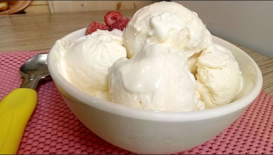 ИНГРЕДИЕНТЫ: сливки не менее 33% жирности - 400 г. сгущённое молоко ~ 200 г. ванильный сахар - 1 ч.л. (или щепотка ванилина) Перед тем как есть мороженое, подержите его при комнатной температуре 10-15 минут. Для изготовления мороженого нам понадобятся охлажденные сливки 33 процентной жирности 400 гр, чем жирнее сливки, тем вкуснее станет наше мороженое, половинка банки сгущенного молока и немного ванилина для аромата.
