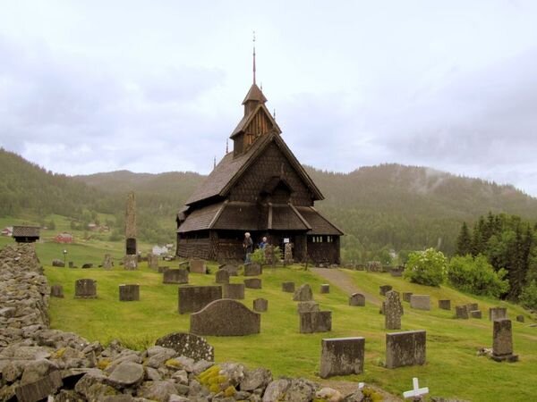 Проснулись около 8 утра по местному времени. Железная дорога, напугавшая вчера, не доставила никаких неудобств – то ли поезда ночью не ходили, то ли спали мы очень крепко. Выехали ближе к 10 часам. Путешествие в Норвегию продолжается! От кемпинга в Драммен едем по трассе Е134. Первым делом посетили ставкирку в Хеддале (72 км от Драммена). Она считается старейшей ставкиркой страны, строить которую начали в 1 147 году. Правда, уйму раз перестраивали. Вход платный — 65 крон, но внутри смотреть особо нечего. Координаты для заинтересовавшихся — N59 34.763 E9 10.567.