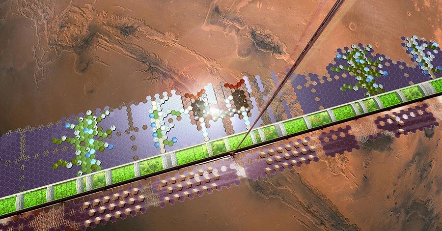 Будущее, одна из планет Солнечной системы. Город-Кольцо (Ring City), который опоясывает, в данном случае, Марс, оставаясь на месте, в то время, как планета вращается вокруг своей оси. — Город располагается на высоте около 70 км и вращается со скоростью, чуть более 1050 км/час над экватором. Таким образом в Ring City компенсируется вращение Марса.