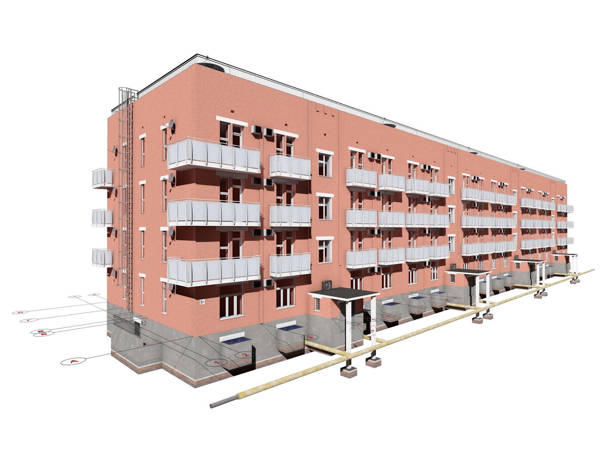 Проект четырехэтажного четырехподъездного дома на 32 квартиры