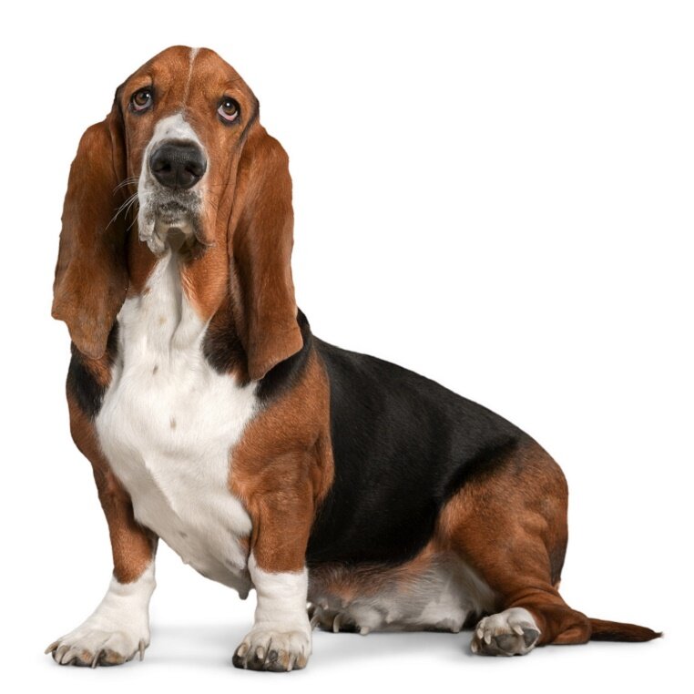 Общий вид. Бассет-гаунд — собака с длинным туловищем, короткими ногами и очень выраженным подвесом складчатой кожи под гортанью. Тем не менее, однако, производит очень гармоничное впечатление. Высота в холке не более 38 см. Вес должен соответствовать высоте в холке и составляет около 23 кг.
