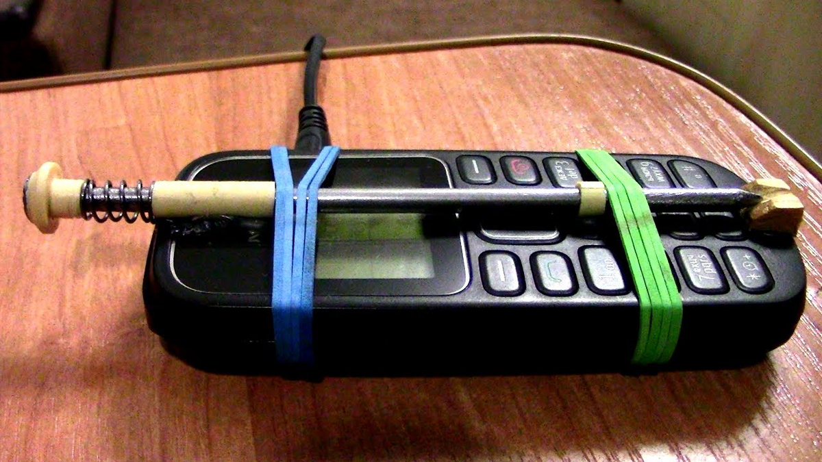 Наверняка у вас где-то в куче хлама валяется старый мобильный телефон, а то и два. 1.Берем телефон, у которого есть функция быстрого набора номера (это условие обязательно). 2. Разбираем телефон. Вырезаем на клавиатуре отверстие над кнопкой с цифрой «2» и припаиваем к контактным площадкам этой кнопки два провода (для имитации нажатия кнопки при замыкании проводов). Собираем телефон. 3. Соединяем аккумулятор с телефоном при помощи пары проводов, соблюдая полярность. Параллельно при