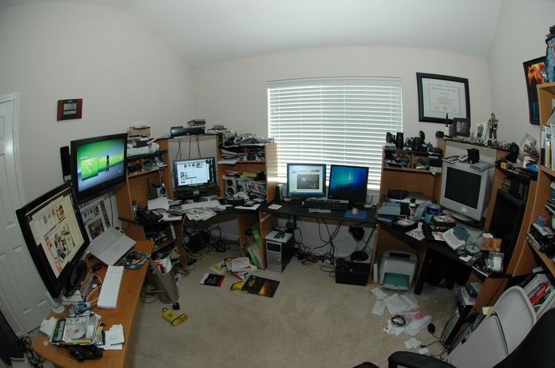 Шок и трепет, чего уж там. Весь зал был заставлен мониторами, системными блоками и прочей продвинутой техникой. А посреди всего великолепия восседал сам Тимоша, аки Господь Бог на престоле, и чего-то там шустрил по клавиатуре. Одетый абсолютно «по гражданке», в майке, джинсах и кедах.