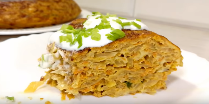 Капуста - 1 килограмм Лук - 2 штуки Морковь - 2 штуки Мука - 1 столовая ложка Яйца - 6 штук Соль, тмин, паприка, карри Петрушка Лук нарезать тонкими полукольцами. Обжарить на сковороде минуты 2. Далее, добавить к нему натертую морковь. Обжарить еще 3-4 минуты на среднем огне. Нашинкованную капусту добавить к луку и моркови. Обжарить до мягкости капусты. Когда капуста готова, посолить и добавить все специи. В капусту добавить муку. Яйца взбить с щепоткой соли и нарубленнной зеленью. Залить яйца в капусту. Хорошо перемешать. Большую сковороду смазать растительным маслом. Выложить капустную массу. Накрыть крышкой и готовить на слабом огне минут 15-20. Когда низ подзолотился и схватился, с помощью тарелки следует перевернуть пирог. И доготовить еще 10 минут, при закрытой крышке, на слабом огне. Приятного аппетита! Буду рада вашим лайкам и подпи