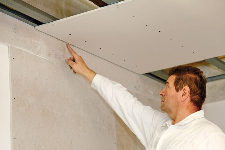 Обязательно учитывайте то, что у листов с разных сторон разные покрытия. Серая сторона прикладывается к стене (потолку), в то время, как сторона цвета слоновой кости предназначена для дальнейшей отделки – или нанесения краски, штукатурки или обоев. Поскольку эти панели очень хрупкие, хранить перед работой их необходимо с большой осторожностью, чистовой стороной друг к другу.