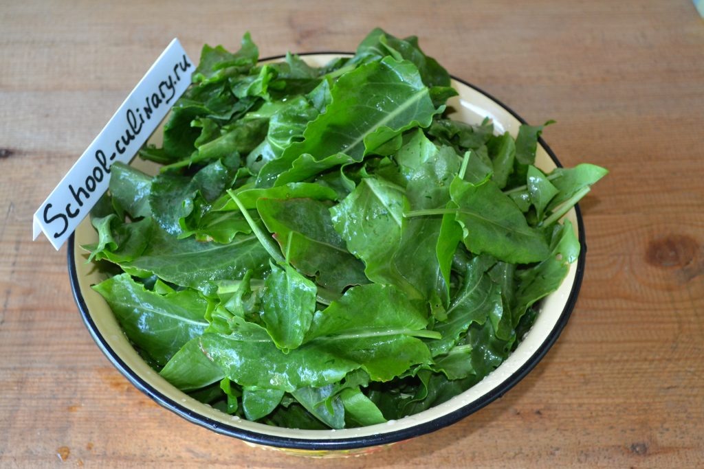 Первым делом нужно перебрать листочки, удалить плохие. Опустите их в большую мисочку с водой и оставьте на 5 минут. После воду слейте и еще разок промойте щавель.