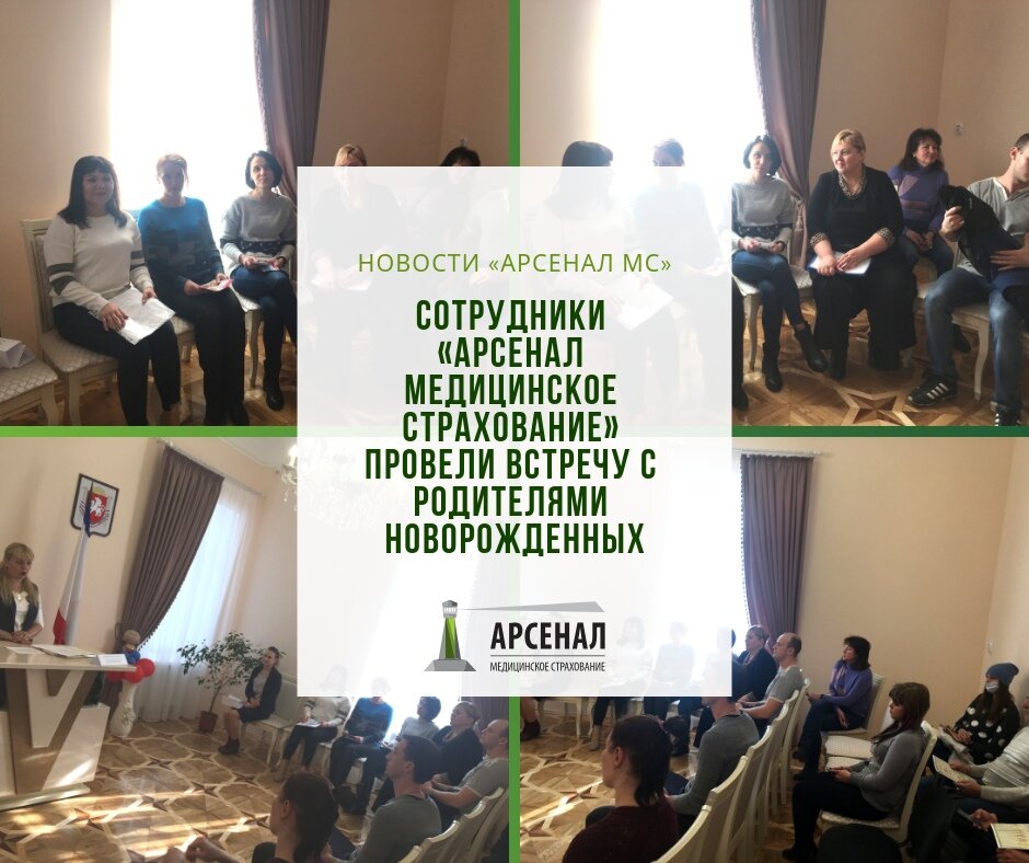 22 марта 2019 года сотрудники регионального отделения ООО «Арсенал МС» по г. Симферополь провели встречу с родителями новорожденных в отделе регистрации рождения г. Симферополя Департамента ЗАГС Министерства юстиции Республики Крым. В ходе встречи специалисты объяснили, что такое полис обязательного медицинского страхования (ОМС), как его получить, в чем заключаются права и обязанности застрахованных и какие документы необходимы для оформления полиса ОМС новорожденным. Специалисты ответили на вопросы, касающиеся Территориальной программы госгарантий бесплатного оказания гражданам медицинской помощи и порядка обслуживания новорожденных в поликлинике. Особое внимание было уделено диспансеризации и деятельности страховых представителей.