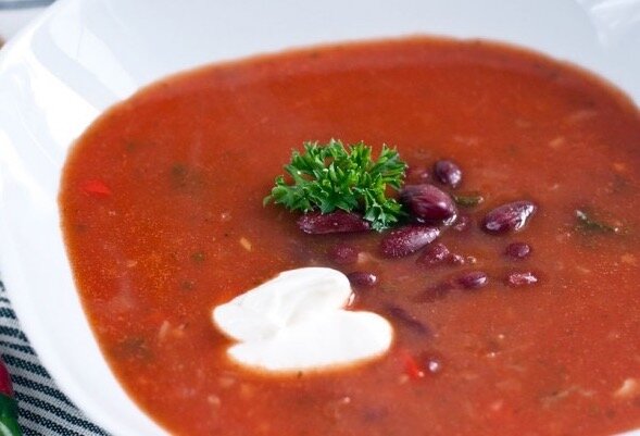 Варим в бульоне или в воде фасоль красную( примерно час) зависит от размера фасоли и производителя). Кидаем в бульон морковь, рис и варим 10 минут, затем добавляем картофель. Обжариваем лук до золотистого цвета, затем кидаем томатную пасту или помидор, все зажариваем и добавляем в суп! Если есть желание обжарить можно на копченом сале или беконе ( тоже очень вкусно будет).Провариваем еще 5 минут! Наш ароматный суп готов!