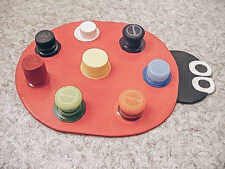 · Возьмите бутылку, отрежьте верхнюю часть высотой 5 см, разрежьте на полоски, загните. · На картоне сделайте отверстия размером с пробками. Если картон имеет неприглядный вид, обклейте цветной, самоклеящейся бумагой. · Горлышки вставляйте так, чтобы отогнутые полоски находились снизу, а сверху - сами горлышки из бутылок. · Чтобы крышки не крутились, наклейте широкий скотч. Простая, ув