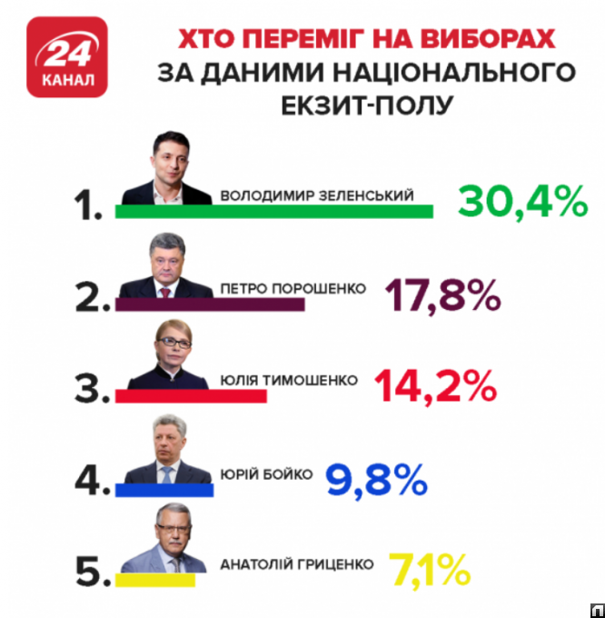 Во второй тур выборов прошли Зеленский и Порошенко об этом нам говорят украинские источники канал "112". "Украина". Согласно тем данным, что у нас есть Зеленский выиграл у Порошенко на 12%. На первом месте - Зеленский 30,8%, второе место - Порошенко 18.6%, а третье место - Тимошенко 13.9%.